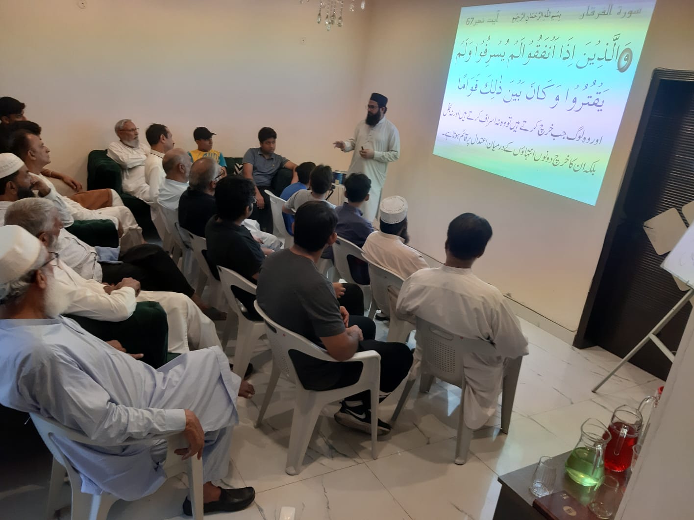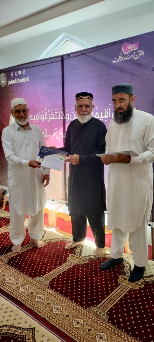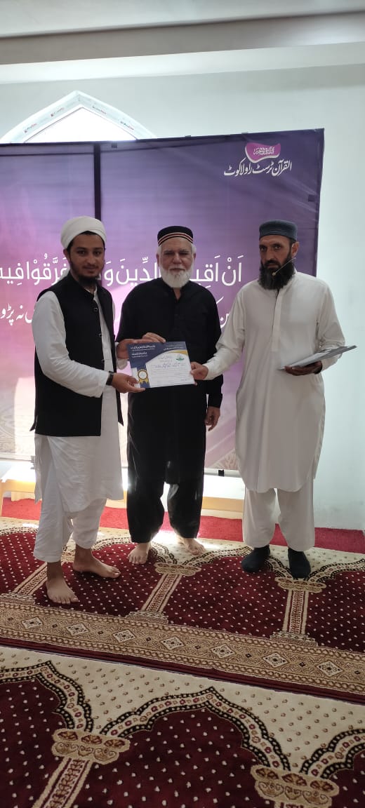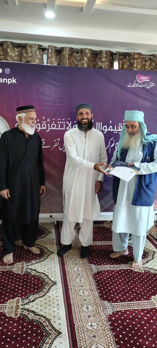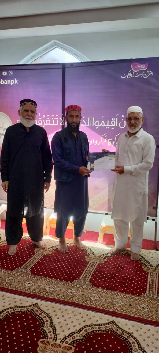 احتتامی تقریب دس روزہ فہم القرآن کورس الحمد للہ آج القرآن کمپلیکس راولاکوٹ میں 42 آیات کے ذریعے 10 روزہ فہم القرآن احتتام پذیر ہوا۔ کورس کے احتتام پر تقسیم اسناد کی تقریب ہوئی جس میں انعامات استاد شاہد بھٹی صاحب کے ساتھ سرپرست اعلی القرآن ٹرسٹ راولاکوٹ سردار محمد اسحاق خان صدر القرآن ٹرسٹ ندیم اشرف معروف بزنس مین سردار نذیر صاحب اور مقبول شاہین صاحب نے تقسیم کیے۔ یہ کورس 60 سے زائد مرد و خواتین نے مکمل کیا۔ استاد شاہد بھٹی صاحب نے کورس انتہائی آسان اور دلچسپ انداز میں مکمل کروایا۔ یہ کورس القرآن کمپلیکس میں 10 تا 12 مرد و خواتین اور 4 تا 6 مرد خضرات کے لیے کروایا گیا۔ اس کے علاوہ مختلف اسکولوں میں Allied School Rawalakot ، READ Foundation میں بھی Demo Classes ہوئیں۔ فیلمیز کے لیے بعد از عشاء اورچند نوجوانوں کے لیے بعد از فجر سپیشل کلاسیں بھی ہوئیں۔ یونیورسٹی اسٹوڈنٹس کے لیے شہر کے ایک ہاسٹل میں بھی Demo Class ہوئی۔ پروگرام کے احتتام پر صدر القرآن ٹرسٹ راولاکوٹ نے القرآن کمپلیکس کے مقاصد پر بات کرتے ہوئے کہا کہ القرآن کمپلیکس کا مقصد فرقوں اور مسالک سے بالاتر ہو کر قرآن کی دعوت پھیلانا ہے تاکہ قرآن کی دعوت عام ہو اور قرآن پر انفرادی عمل کے ساتھ ساتھ اس کے اجتماعی عادلانہ و منصفانہ نظام کی راہیں بھی ہموار کی جا سکیں۔ صدر القرآن ٹرسٹ نے شاہد بھٹی صاحب کا شکریہ ادا کیا اور کورس مکمل کرنے والے تمام طلبہ کو مبارکباد بھی دی۔ انھوں نے ایڈوانس کورس کے لیے طلبہ و طالبات کو رجسڑیش کے لیے بھی کہا۔ ایڈوانس کورس کے لیے 10 سے زائد طلبہ نے رجسٹریشن کروائی اور ارادہ کیا کہ وہ قرآن کی دعوت پھیلانے، کے لیے اپنی توانیاں لگائیں گے اور حدیث نبوی ﷺ خیرکم من تعلم القرآن و علمہ کے مصداق بنیں گے۔